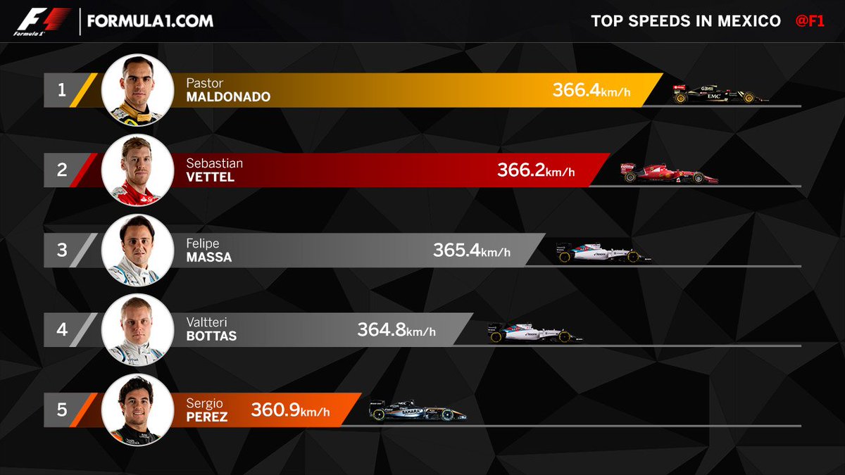 Tänä vuonna kovimmat huippunopeudet saavutettiin Meksikon osakilpailussa. Pitkä suora ja korkealla merenpinnan yläpuolella ajettu kilpailu mahdollisti kovat nopeudet.