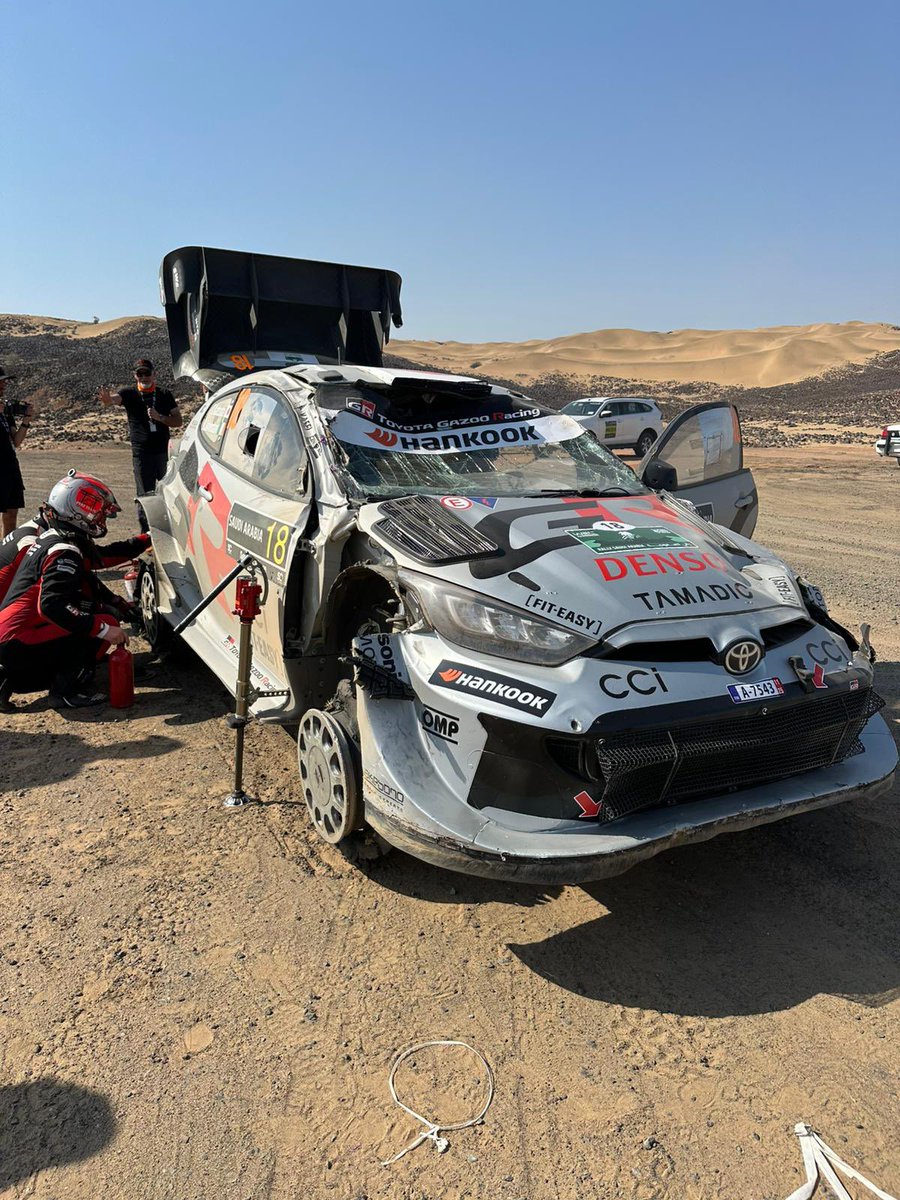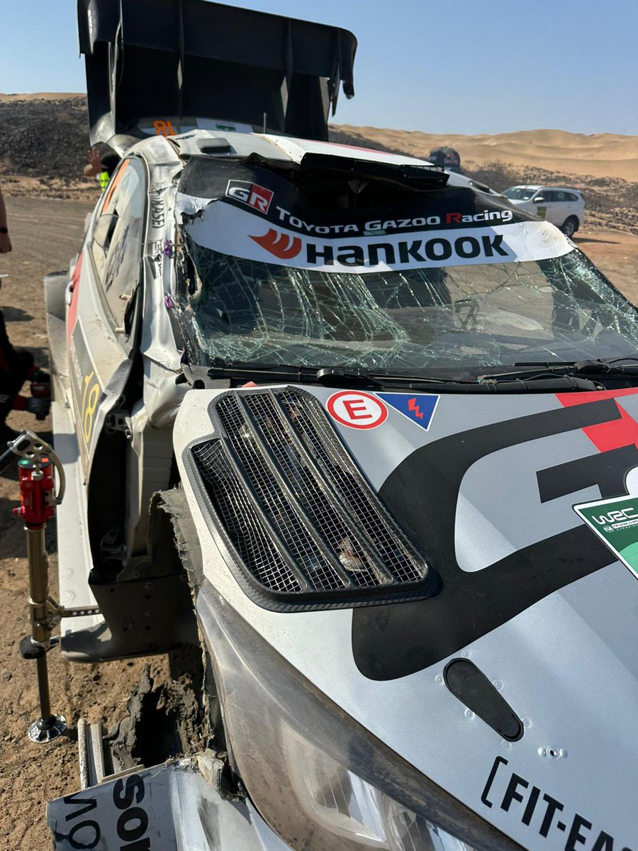 Ralliuransa tähän kauteen päättävän Kalle Rovanperän viimeinen kilpailu on ollut tuskainen. Renkaita on paukkunut rikki toisensa perään ja EK16:lla sama vitsaus osui jälleen kohdalle. Renkaanvaihdon jälkeen kaksinkertainen rallimestari joutui vielä köröttelemään autonsa kaataneen Takamoto Katsutan perässä pätkän maaliin ja turhautuminen paistoi suomalaisen olemuksesta sekä kommenteista.